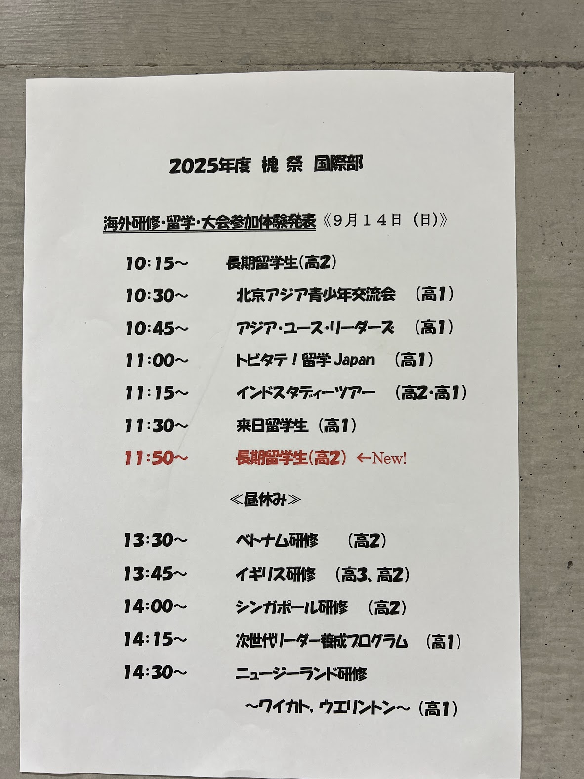 下面是一个教室的发表时间表。